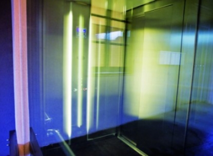 zu trennen und der Aufzug aus Glas verbannt das