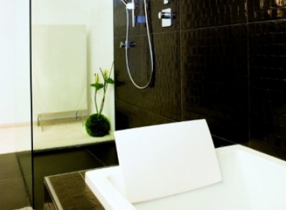 Glastrennwand im Bad bietet Schutz, ohne den Raum